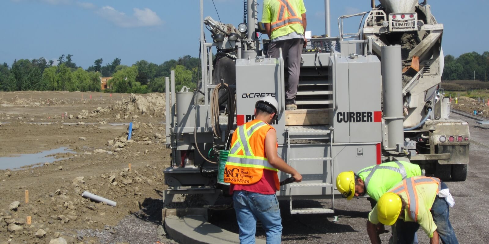 The curb and gutter work follows The Ontario Provincial Standards for Roads and Public Works (OPS), matching the 600.04 specs for curb and 600.07 specs for where the curb and gutter meet.