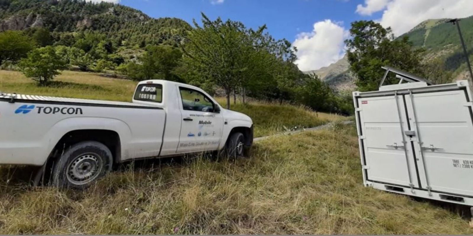 Or, en l’absence de réseau téléphonique, il était impossible de faire appel à la technologie GNSS habituelle. « Avec Topcon, nous avons décidé de travailler sur un pivot mobile avec longue portée », explique Camille Gagne. Une solution autonome sera posée à 1 800 mètres d’altitude, avec des panneaux photovoltaïques, des batteries et des caissons fermés pour éviter les pillages et les dégradations de matériel.
