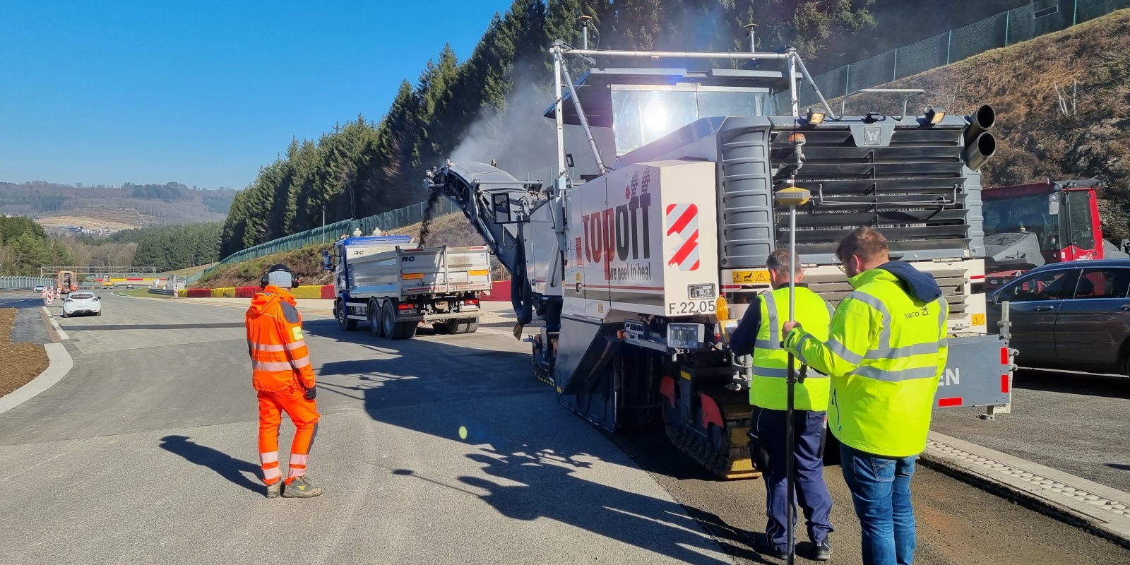 In het kader van de grootschalige renovatie van het circuit van Spa-Francorchamps, die nodig is met het oog op de 24 uur durende motorrace, verdient één aspect bijzondere aandacht: het affrezen van het bestaande wegdek om nieuw asfalt aan te leggen tussen de bochten T8 en T9 en langs de befaamde Raidillon. Dit was slechts één week werk voor het gespecialiseerde bedrijf TdeuxR, dat handig gebruikmaakte van de innovatieve technologie van Topcon België.