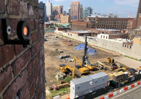 Er is een installatie op zonne-energie voor monitoring van vervorming gebruikt om eventuele bewegingen van aanpalende constructies als gebouwen, heipalen en trottoirs tijdens graven, heien en bouw van een gebouw van 81 verdiepingen.