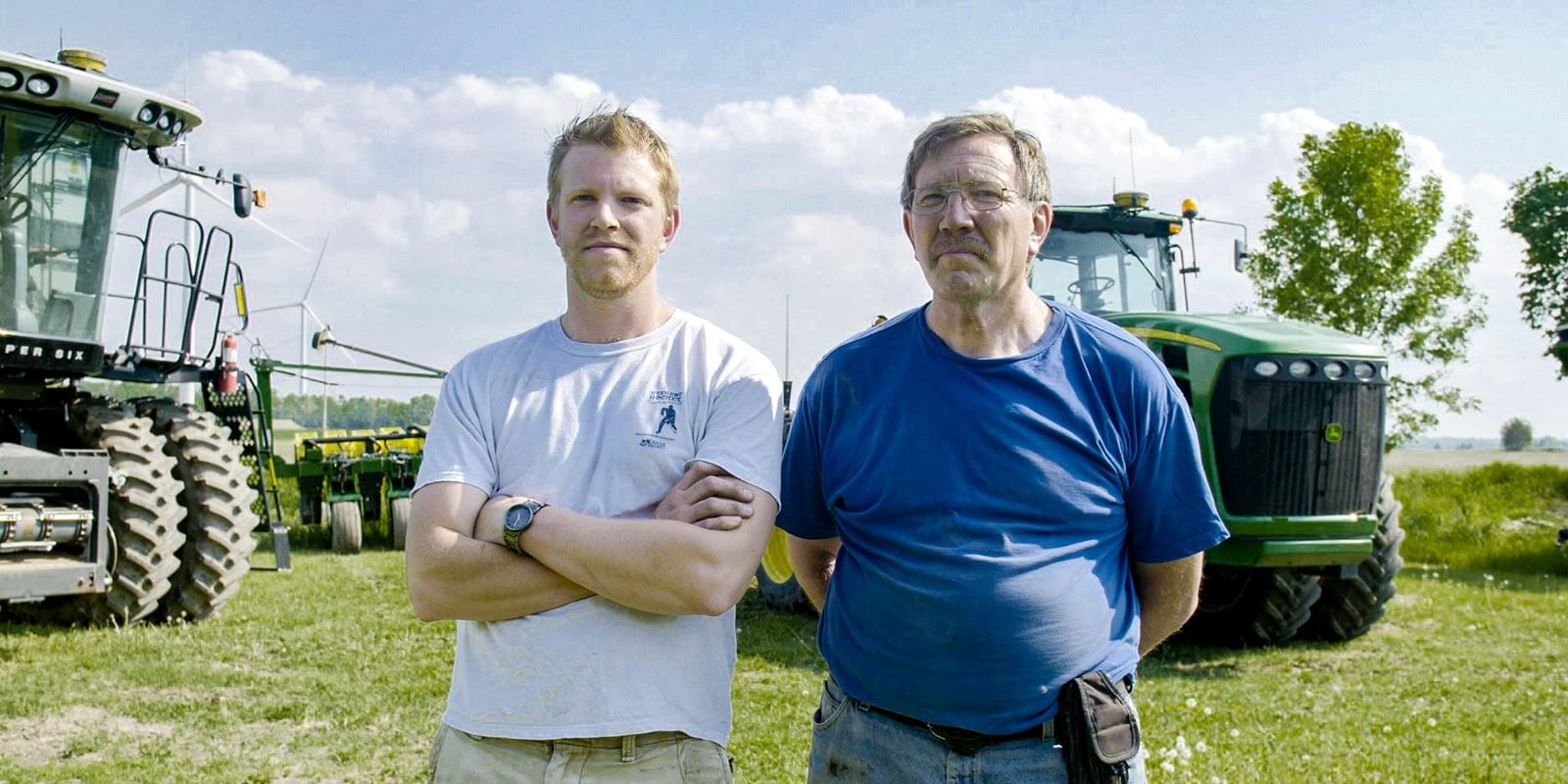 Отец и сын Грофилды — не единственные фермеры в Онтарио, которые выиграли от использования технологии ГНСС. В 30 милях от них Джефф Бейкер и его отец, Гэри, также используют управление через систему спутниковой связи и автоматический контроль заглубления для своей кукурузной сеялки. Однако в этом случае начал процесс именно отец.