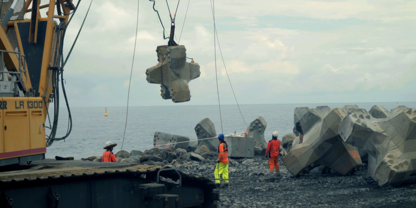 «И помимо всего прочего,» - говорит Веррио (Verriaux), - «у острова Реюньон есть уникальная среда, в которой морские млекопитающие и редкие виды птиц должны быть защищены, а также есть Индийский океан со всеми его прекрасными коралловыми рифами». Другими словами, требуется предельная осторожность. «Размещение блоков, которые защищают набережную от моря, является очень сложной задачей. Мы должны были знать, где их разместить. Мы знаем, что вода Индийского океана не всегда прозрачна, поэтому нужно было найти правильное местоположение под водой».