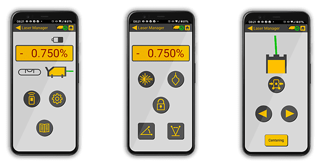 Laser Manager, новое мобильное приложение для Android, переносит многие из наиболее распространенных функций лазерного уклонофиксатора непосредственно на устройство пользователя, например: