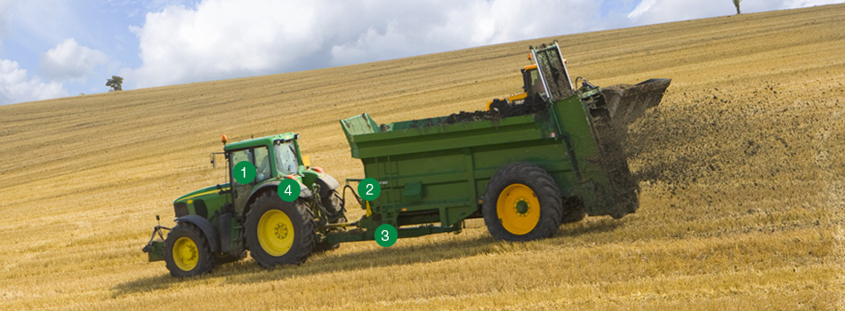 - Автоматический контроль внесения удобрения методом разбрасывания, включая изменяемую скорость внесения и регистрацию данных
